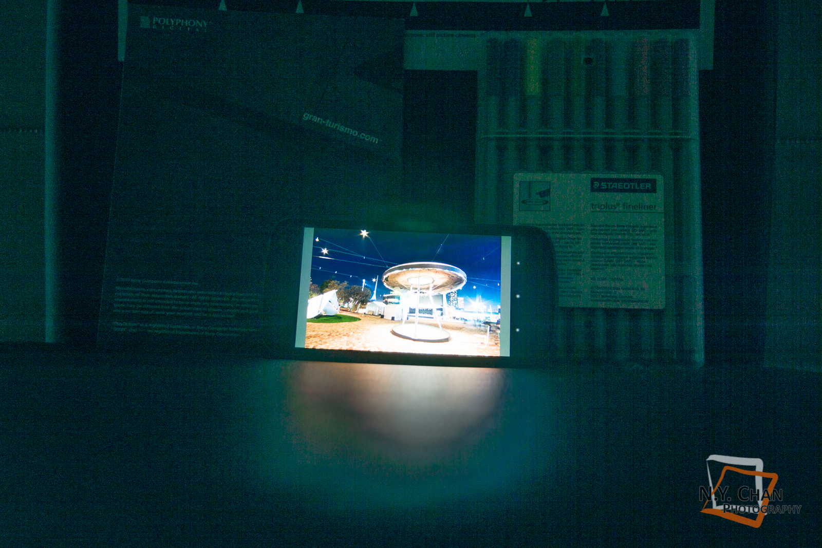 A simple method was designed to test this performance measure. The room lighting is now set to a very dim level, and a bright light source is introduced into the image, which in this case is a cellphone screen. The image is exposed correctly for the cellphone, leaving the dark areas completely black. An attempt is then made during postprocessing to recover the shadow details.